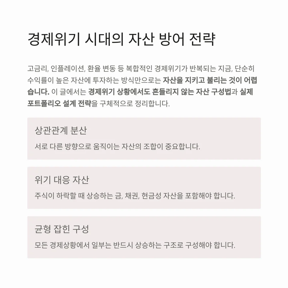 경제위기에도 무너지지 않는 포트폴리오 설계 전략
