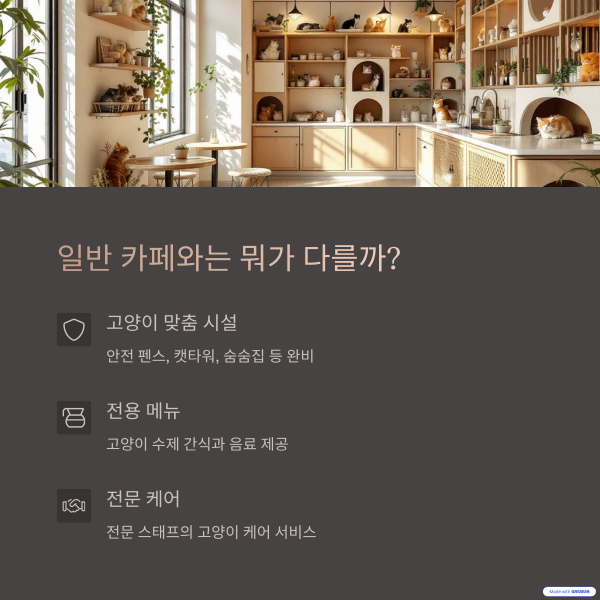 고양이 동반 가능 카페는 일반 카페와 몇 가지 주요 차이가 있습니다.