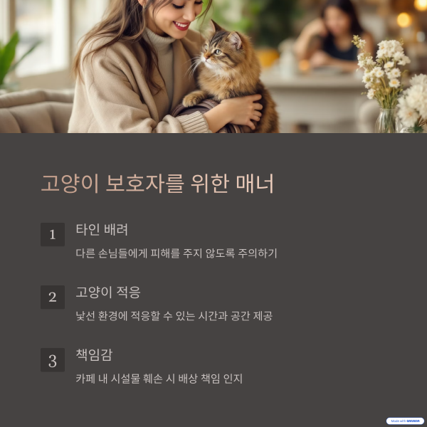 고양이와 함께 카페를 방문할 때는 보호자의 매너가 매우 중요합니다.