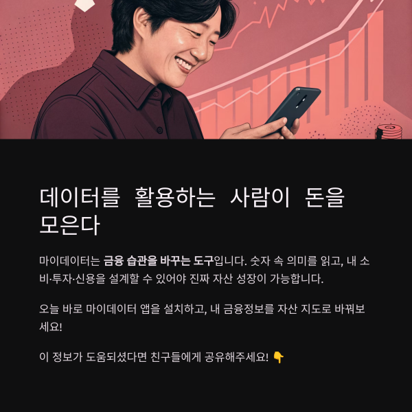 오늘 바로 마이데이터 앱을 설치하고, 내 금융정보를 나만의 자산 지도로 바꿔보세요.