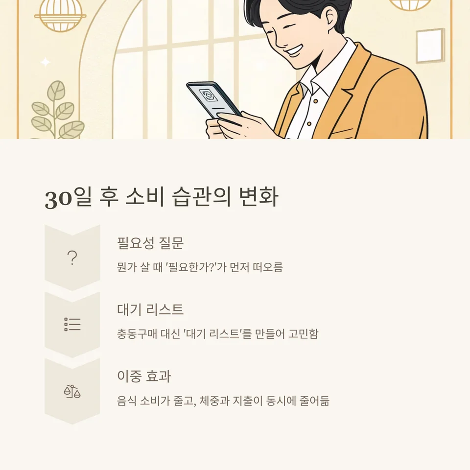 - 충동구매 대신 ‘대기 리스트’를 만들어 두고 고민함