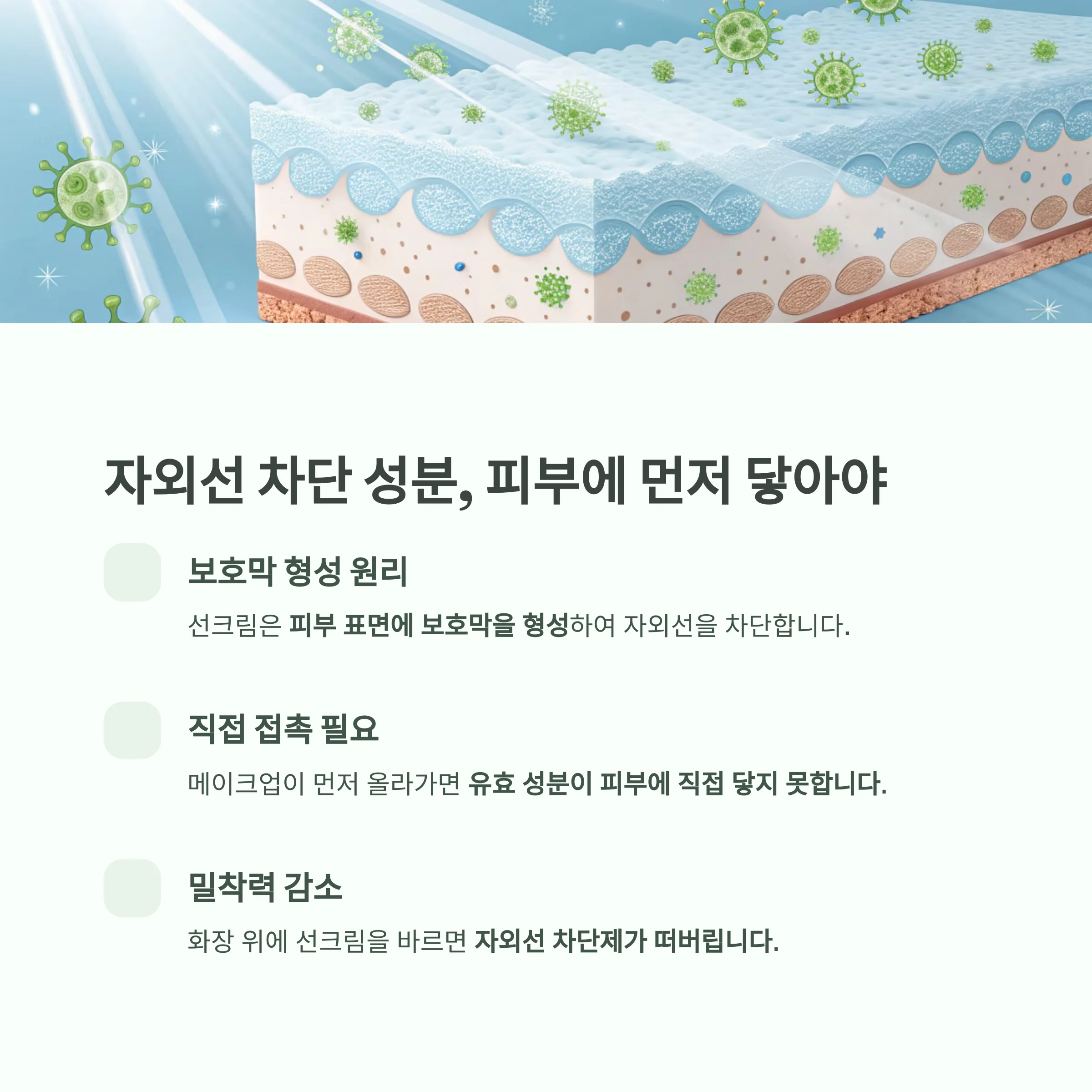자외선 차단 성분, 피부에 먼저 닿아야 한다
