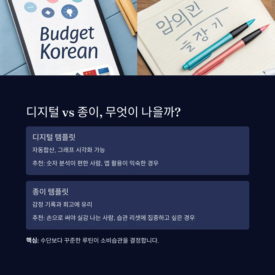 | 디지털 | 자동합산, 그래프 시각화 가능 | 숫자 분석이 편한 사람, 앱 활용이 익숙한 경우 |