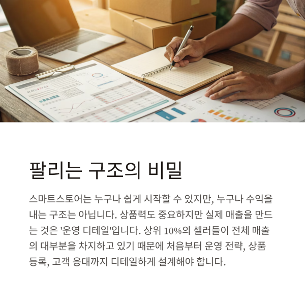 처음 시작할 때부터 운영 전략, 상품 등록, 고객 응대까지 디테일하게 설계해야 합니다.