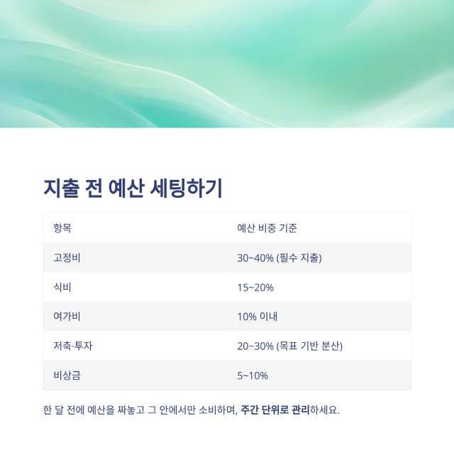 | 2단계 | 고정지출·변동지출 예산 미리 설정 |