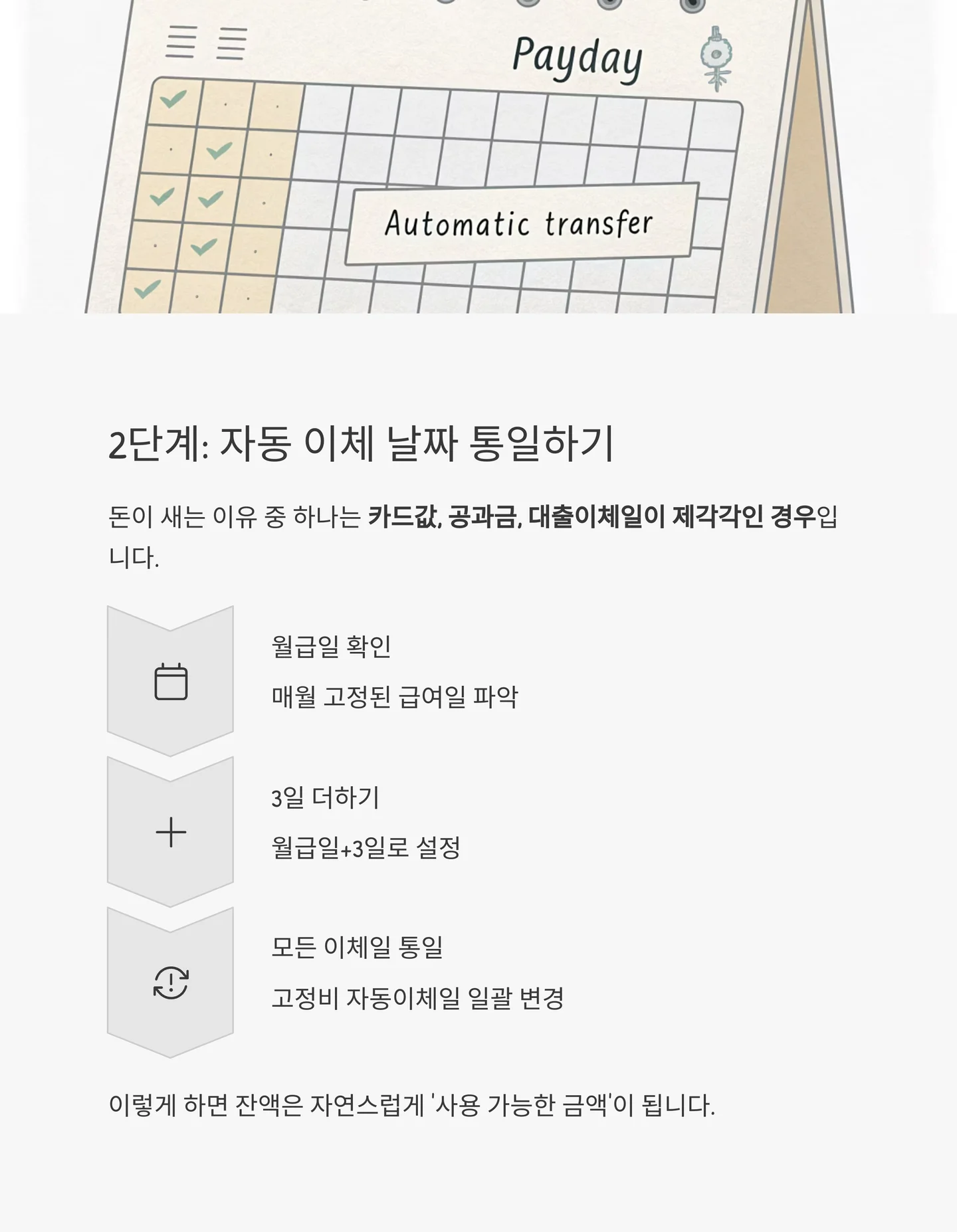 2단계: 자동 이체 날짜를 월급일+3일로 통일하자