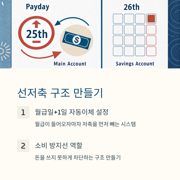 선저축 시스템은 돈을 ‘쓰지 못하게 차단하는 소비 방지선’ 역할을 합니다.