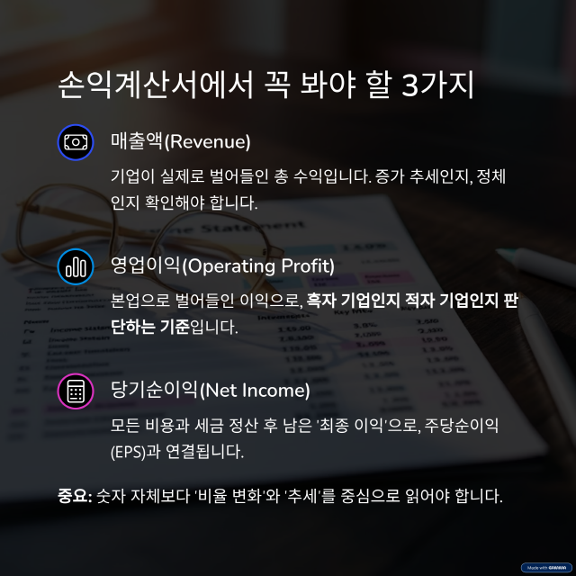 그 기업이 실제로 돈을 벌고 있는지, 버틸 힘이 있는지를 수치로 확인하는 것입니다.