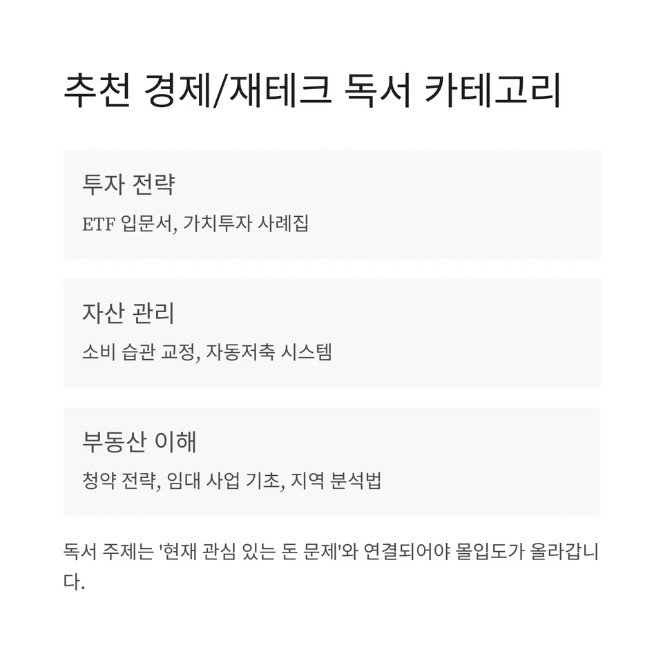 중요: 독서 주제는 ‘현재 관심 있는 돈 문제’와 연결되어야 몰입도가 올라감