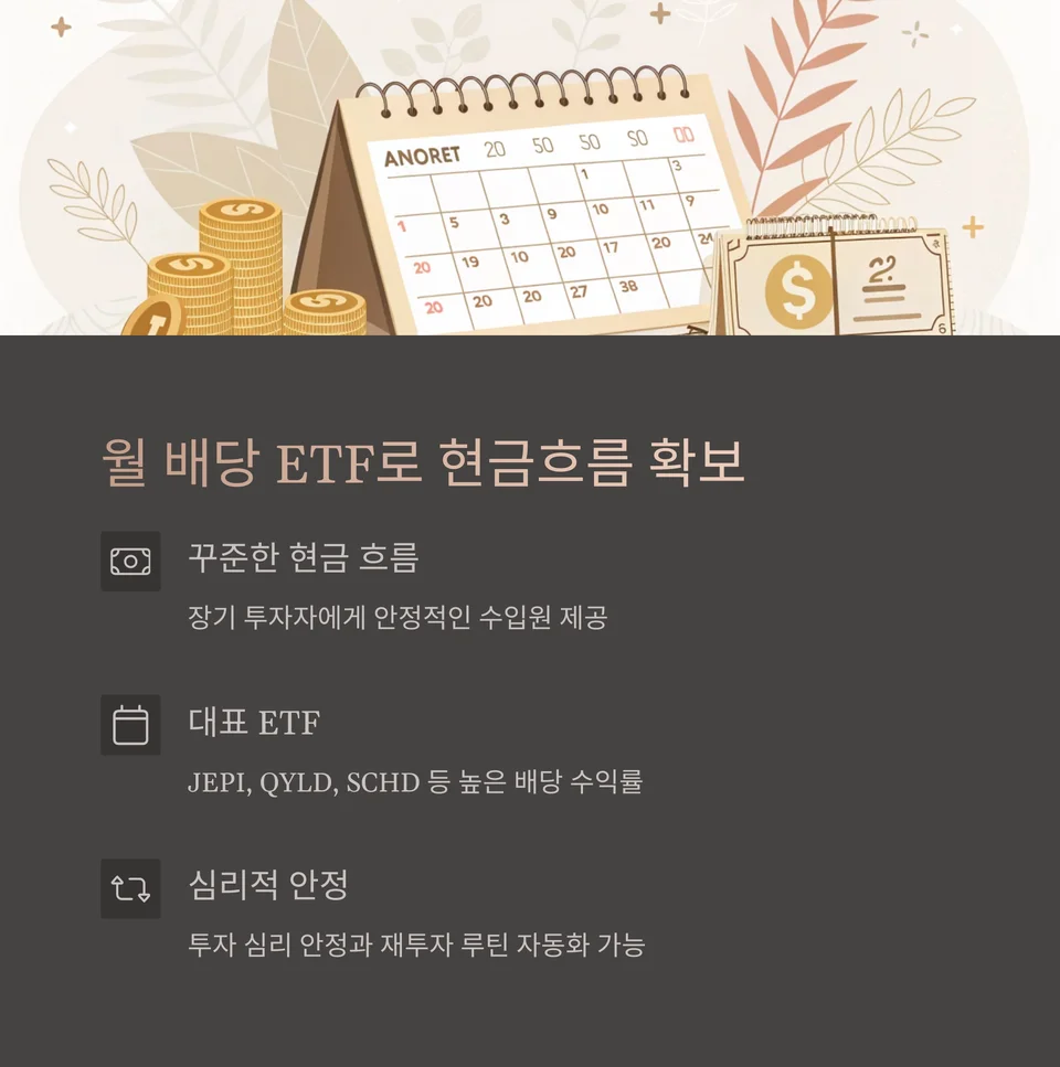 이러한 ETF는 투자 심리를 안정시키고, 재투자 루틴을 자동화할 수 있는 장점이 있습니다.