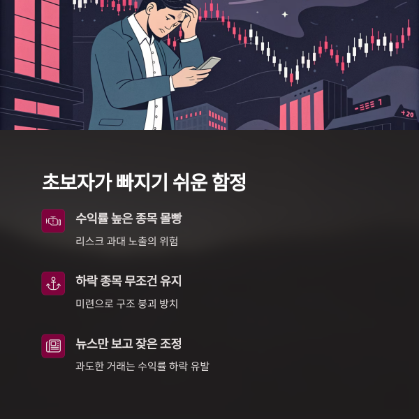 - 하락한 종목을 무조건 유지 → 구조 무너져도 미련으로 방치