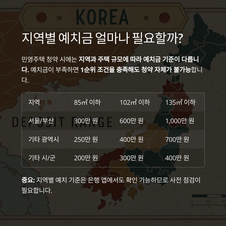 예치금이 부족하면 1순위 조건을 충족해도 청약 자체가 불가능합니다.