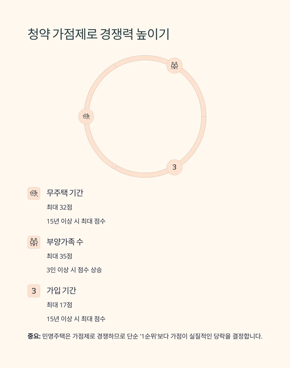 중요: 민영주택은 가점제로 경쟁하므로 단순 ‘1순위’보다 가점이 실질적인 당락을 결정
