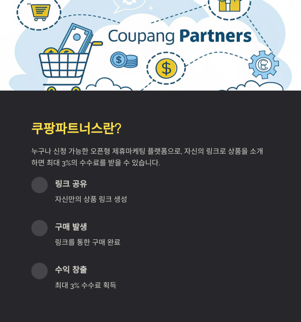 쿠팡파트너스는 누구나 신청할 수 있는 오픈형 제휴마케팅 플랫폼입니다.