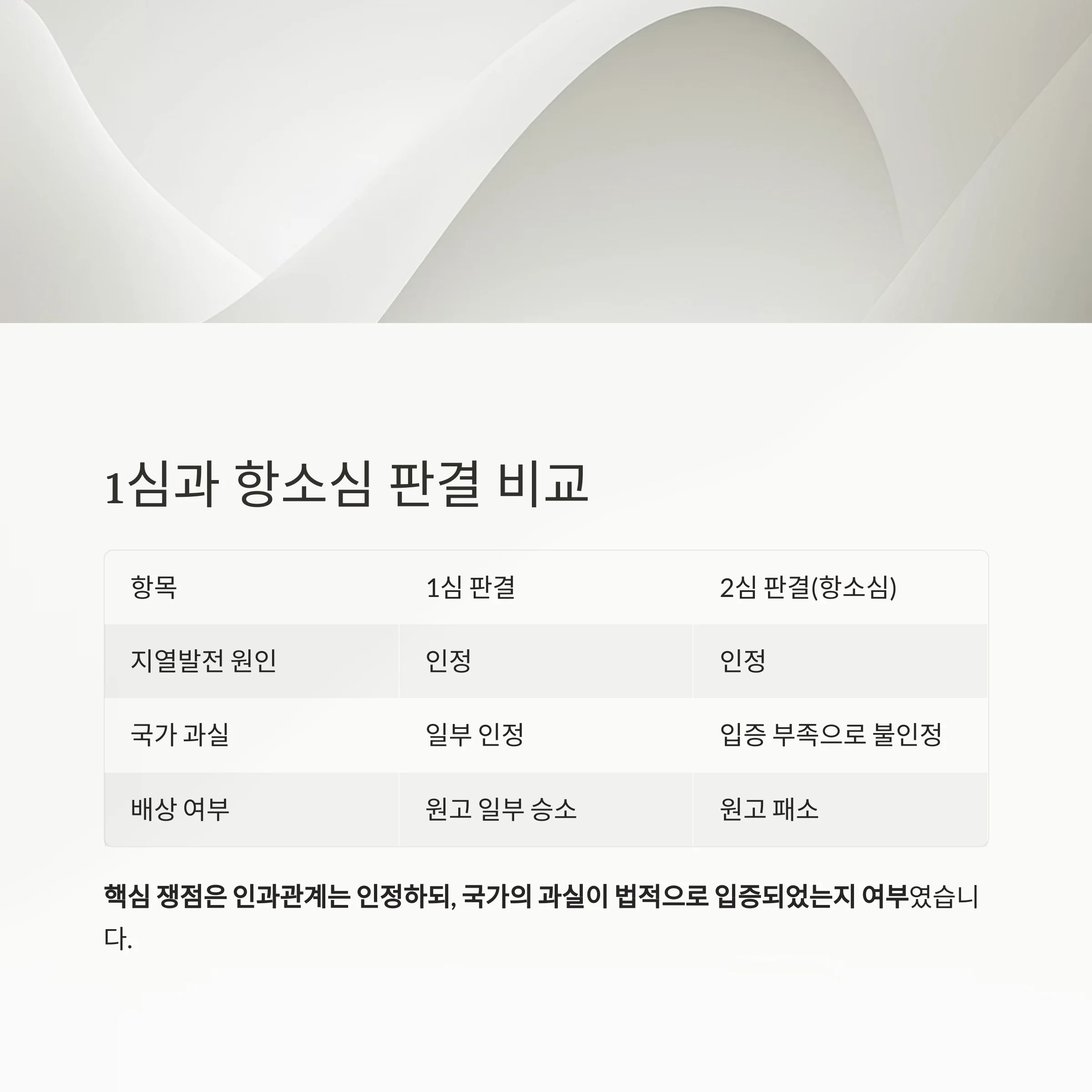 | 국가 과실 여부 | 일부 인정 | 입증 부족으로 불인정 |