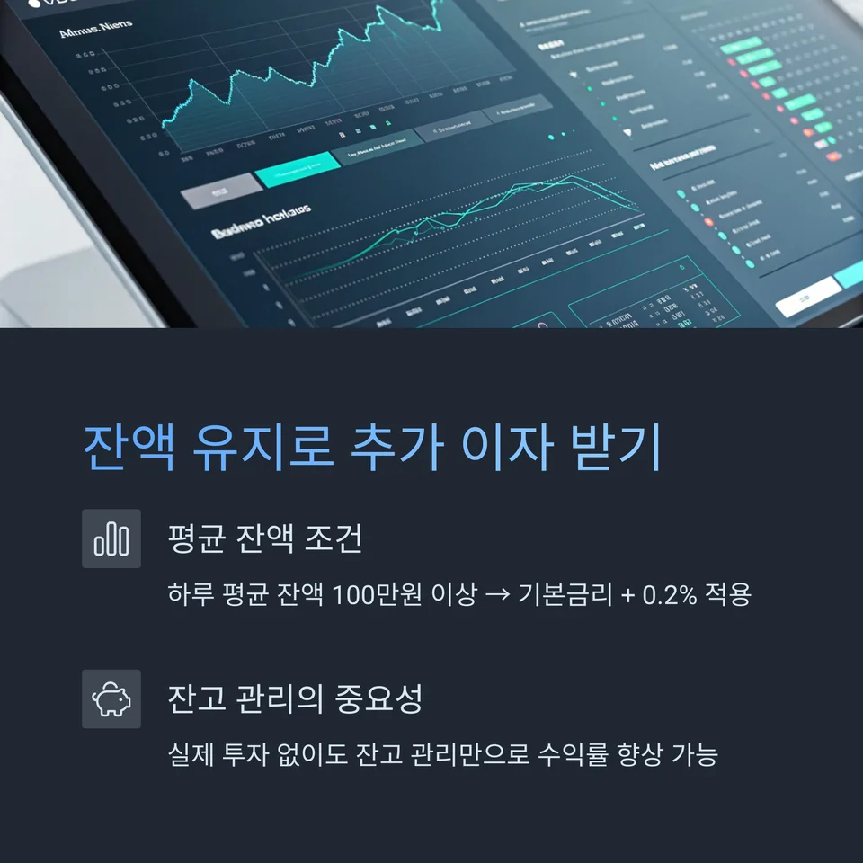 | 일정 잔액 유지 | 장기적 이자 상승 효과 | 평균 잔고 기준인지 확인 필요 |