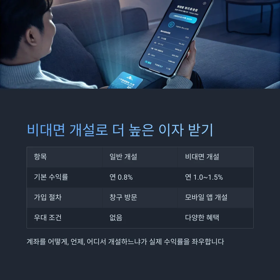 | 비대면 개설+이벤트 참여 | 가입 직후 고금리 적용 가능 | 이벤트 조건 변경 여부 확인 필요 |