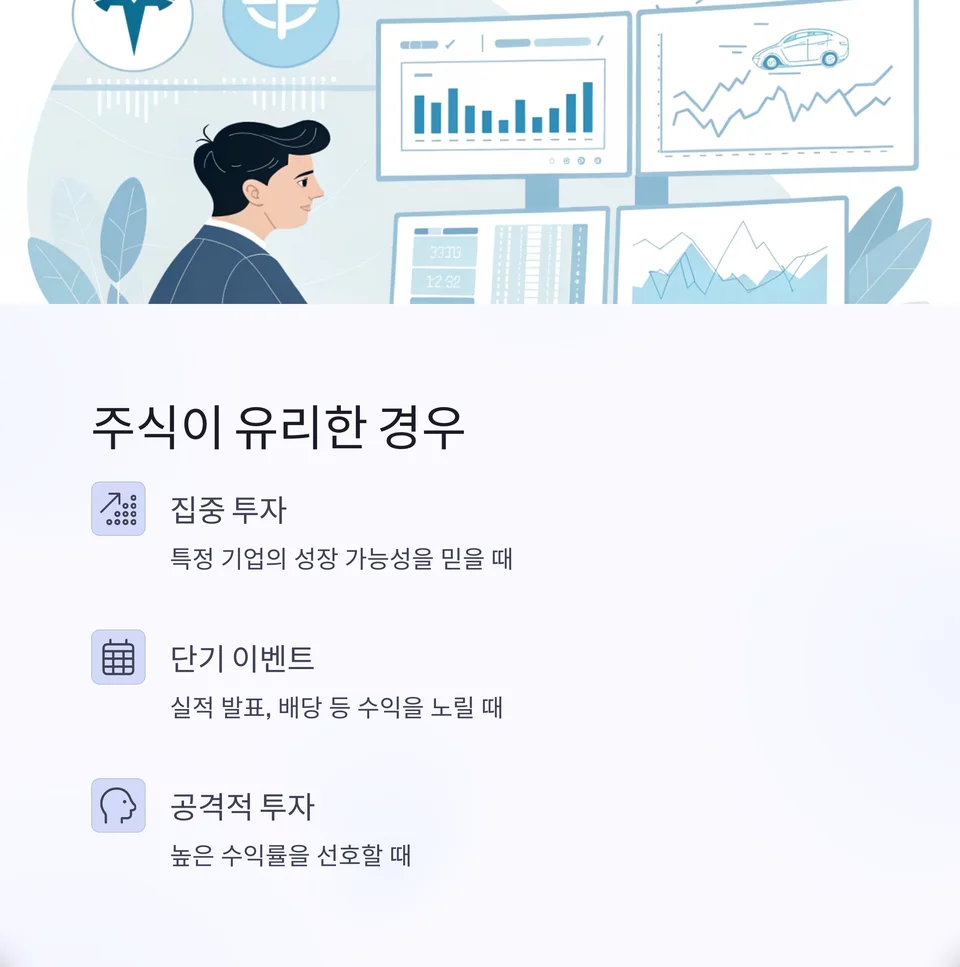 핵심: ETF는 안정성과 효율, 주식은 선택과 집중이 필요한 상품