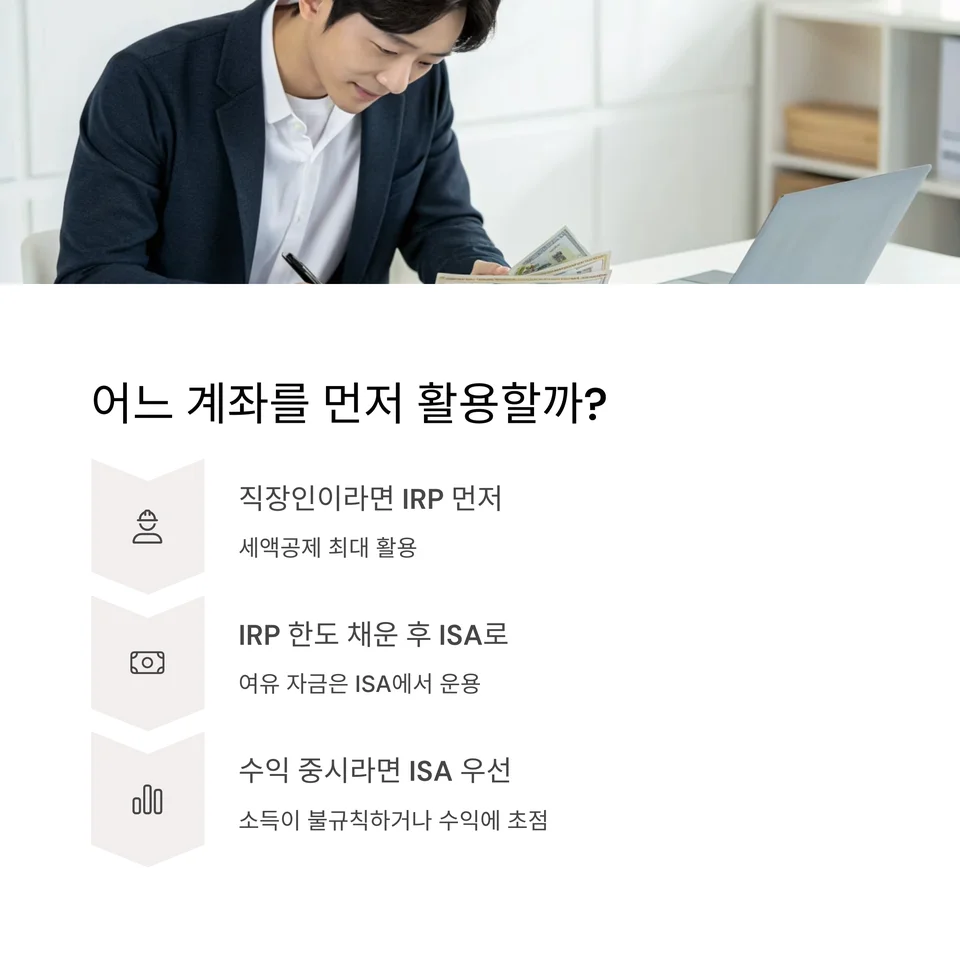 - IRP 한도 채운 뒤, 여유 자금은 ISA로 운용