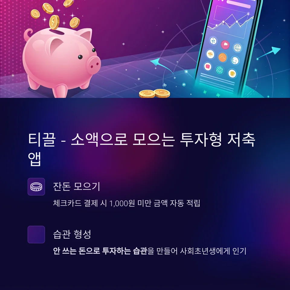 • 주요 기능: 잔돈 자동 저축, 소액 투자, 챌린지 기반 보상